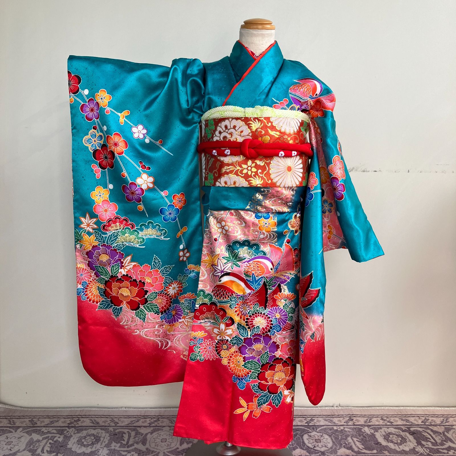 7歳用のインパクトのある紅型七五三衣装です。