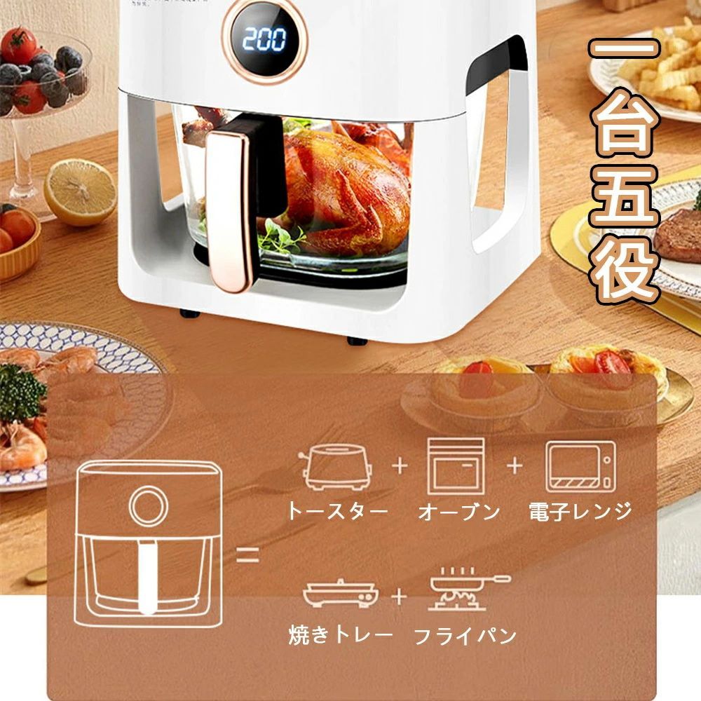 エアフライヤー 1台6役 ノンフライヤー 4.7 L大容量 ノンフライオーブン 透明窓 電気フライヤー 唐揚げ 家庭用 1-6人用 コンパクト タッチパネル 過熱保護 調理家電 キッチン家電 油なし揚物