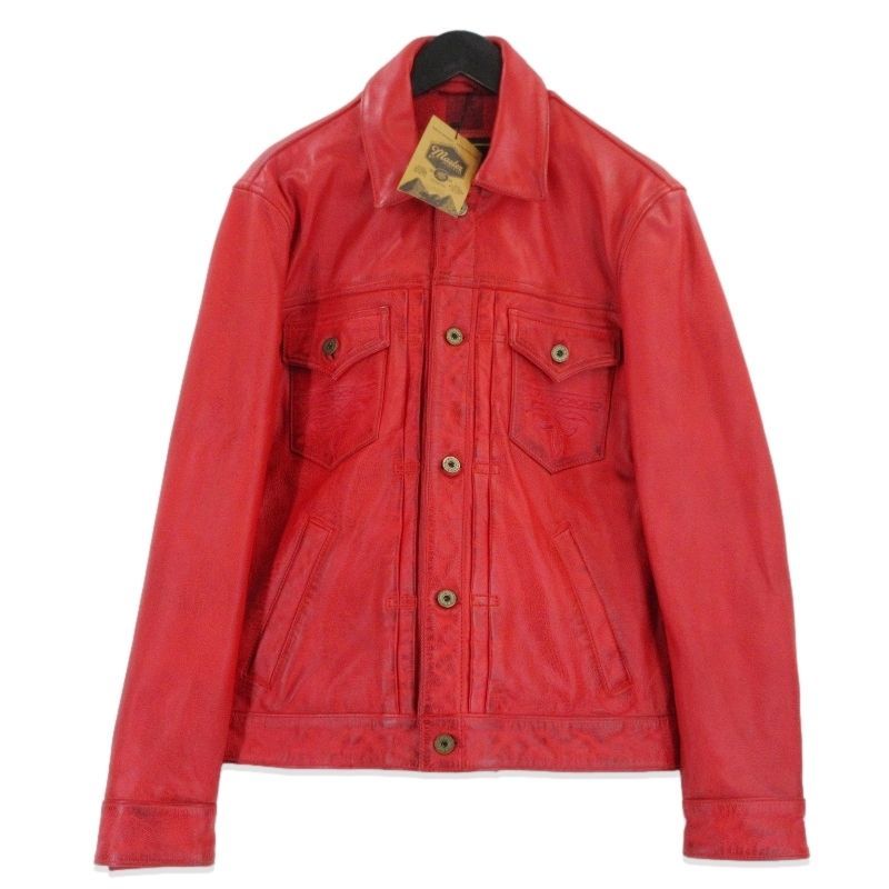 未使用 master SUPPLY マスターサプライ レザージャケット Convoy バッファローレザー ヴィンテージ加工 レッド M