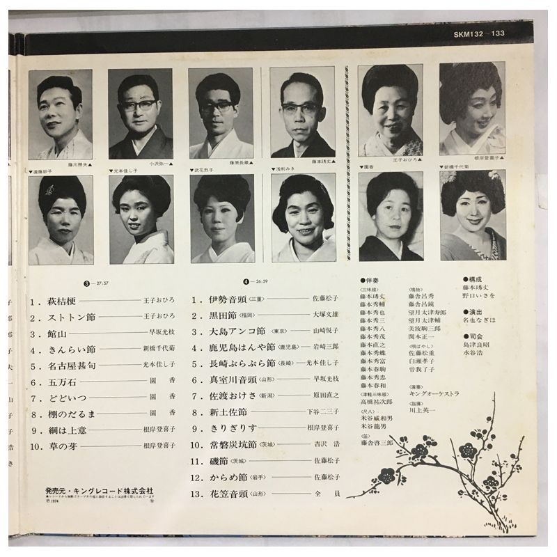 名盤 民謡 邦楽花くらべ 実況録音盤 King Records SKM-132 1974年発売 組LP
