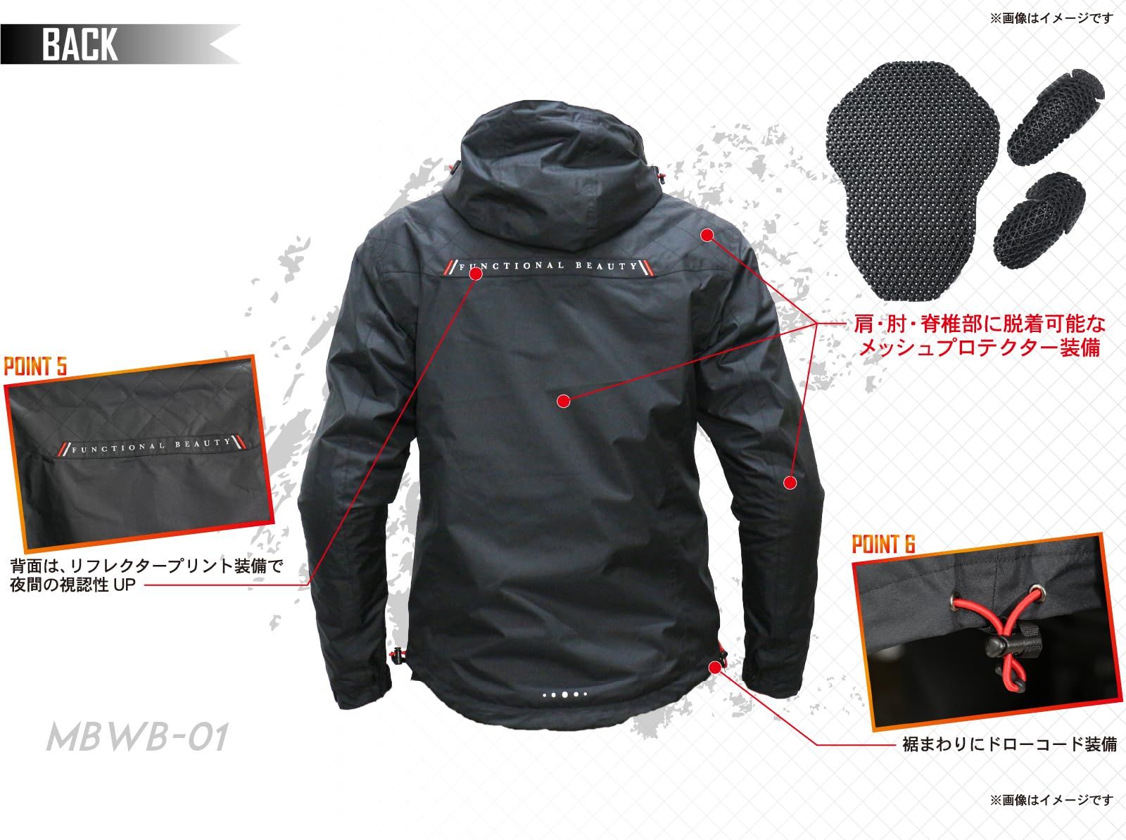 モトベース 春秋モデル 防風 防水 バイク用ジャケット プロテクション ウインドブレーカー ジャケット MBWB 01 ブラック M