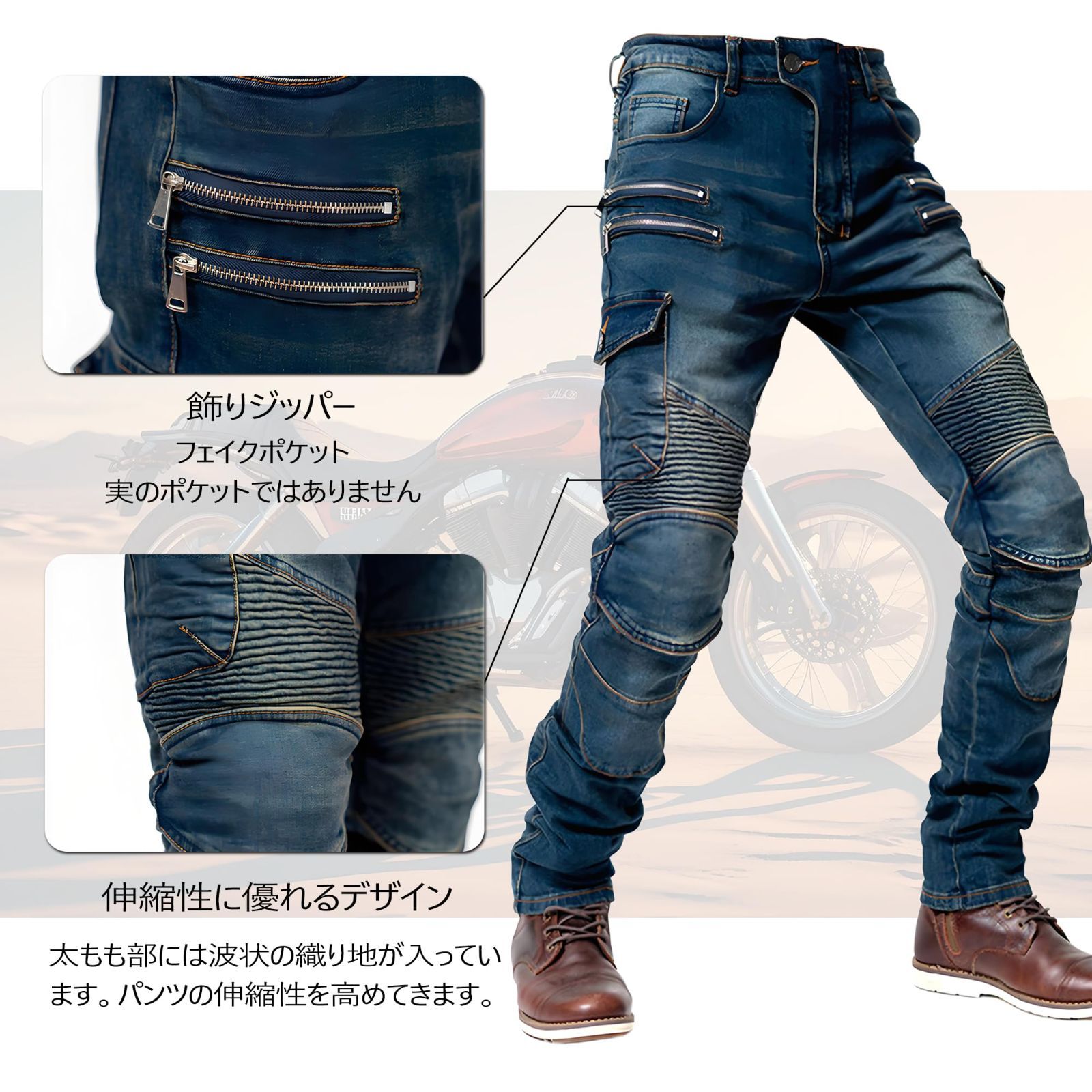 RENHE バイク用パンツ メンズ ライディングパンツ プロテクター ライダースパンツ 春秋 バイクズボン デニム レーシングパンツ オールシーズン ストレッチ素材 耐磨耗性 ブルー Mサイズ