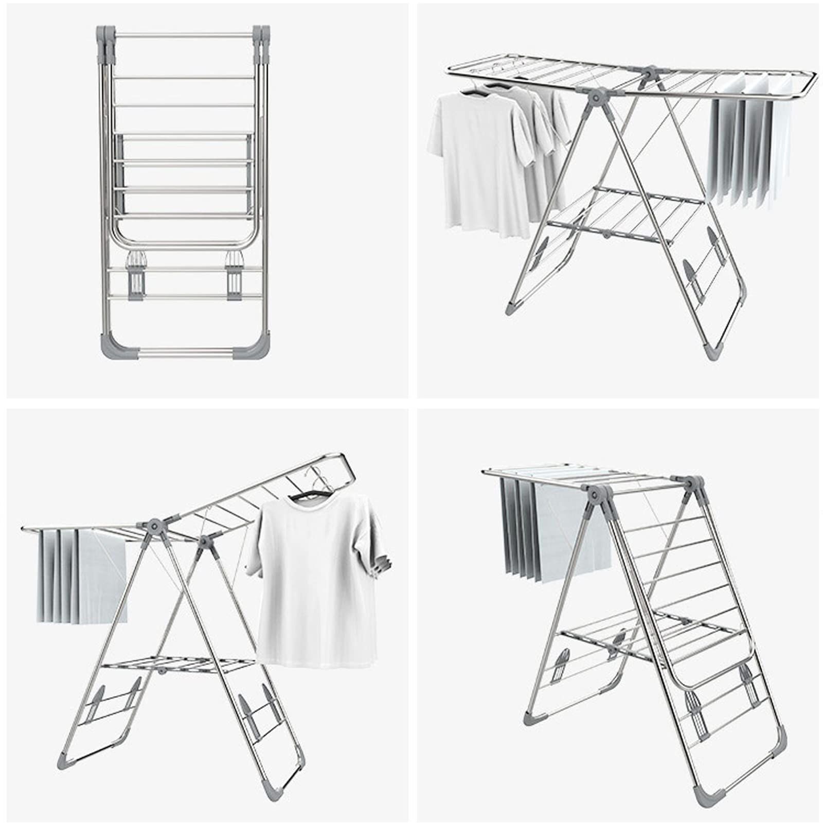 Felicebox 折りたたみ 物干しスタンド 洗濯物干し 布団干し 室内物干し 物干しラック 洗濯干しスタンド 折りたためる 多機能物干し 組立不要 高さ調節可能 省スペース 靴掛け付き 室内/室外用 ステンレス製 頑丈 乾燥ラック