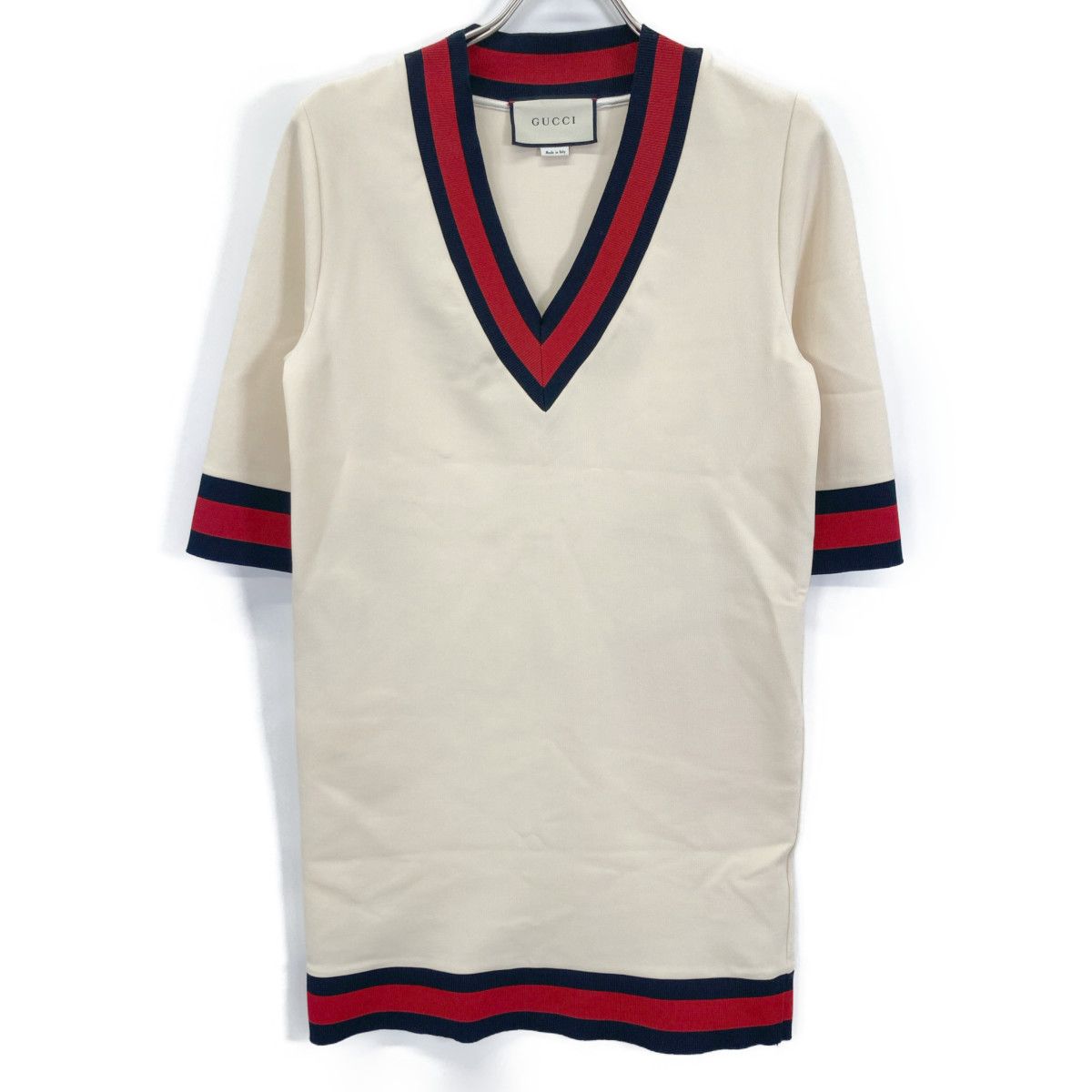 GUCCI グッチ 470315 アイボリー ウェブVネック ストレッチヴィスコース ドレス S