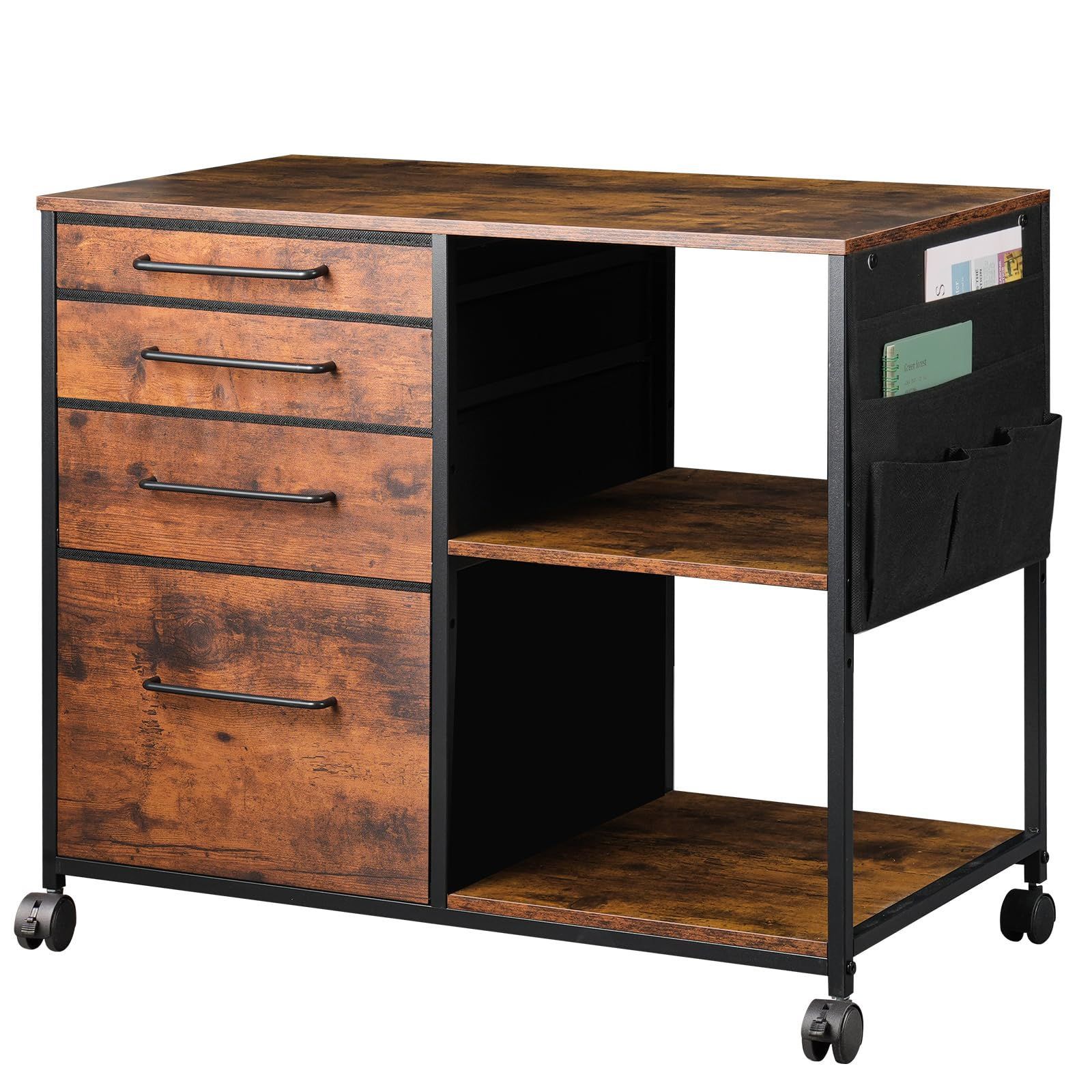 数量 幅750 奥行400 高さ650 mm デスク下収納 キャスター付き 大容量 ビンテージ プリンター台 A 4対応 オフィスワゴン 4段 サイドワゴン 層板付き 袖机 布製 デスクワゴン サイドキャビネット YeTom