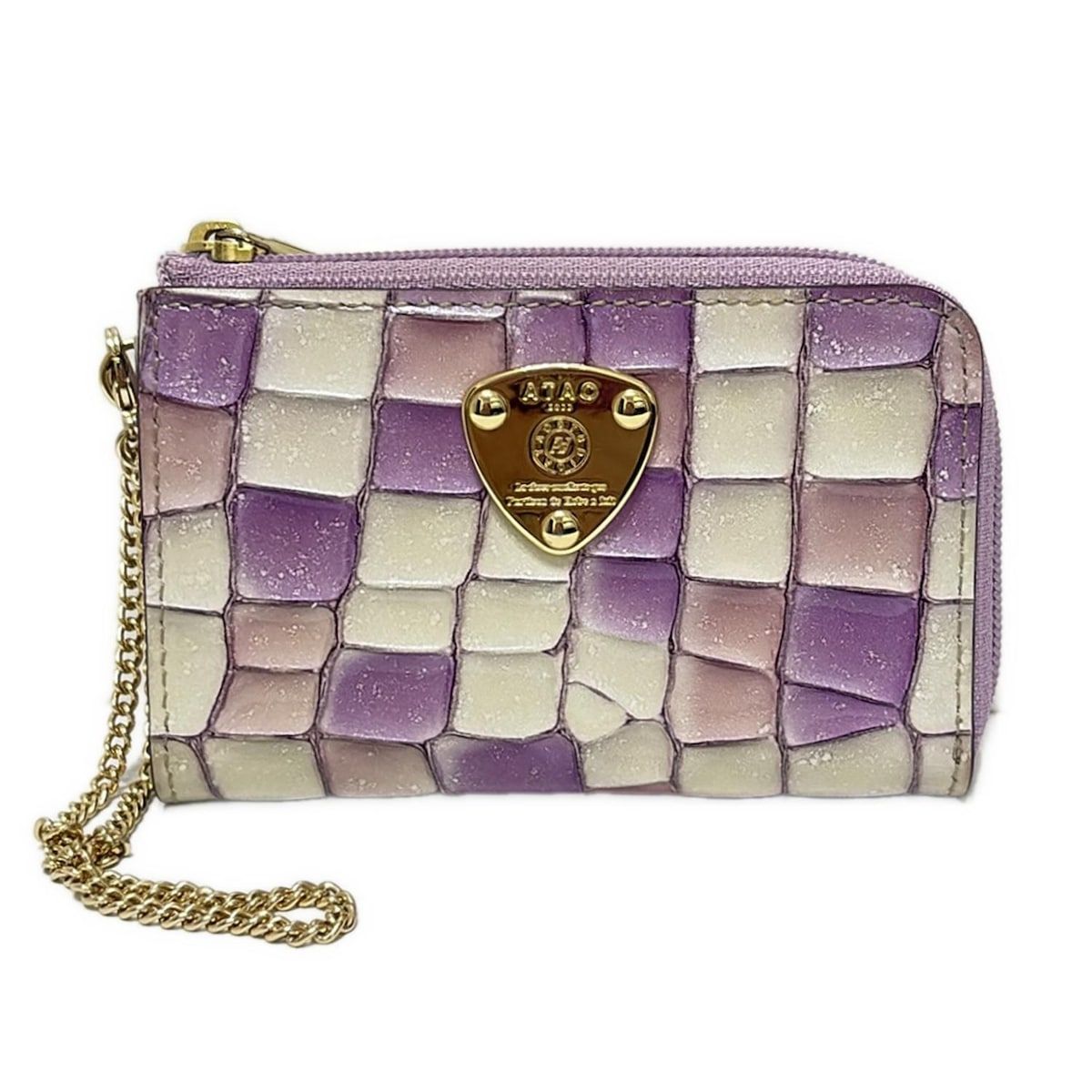ATAO アタオ キーケース - ライトパープル×アイボリー 3連フック 型押し加工 L字ファスナー コインケース付き レザー