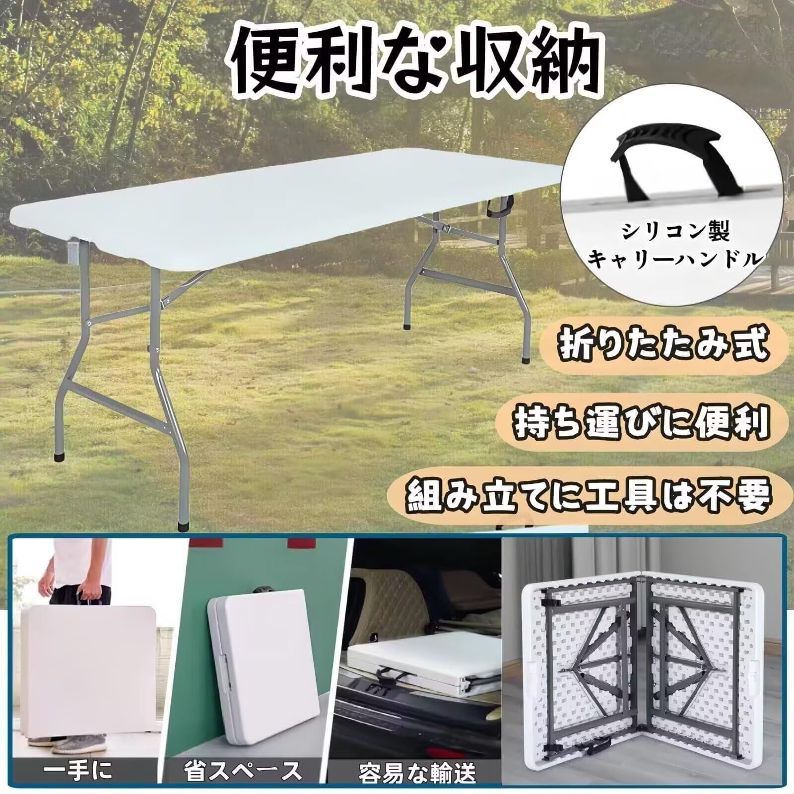 作業台 折り畳みテーブル ワークテーブル 幅180 cm 奥行74 高さ74 アウトドアテーブル 折りたたみ作業台 軽量 レジャーテーブル 完成品 屋外 屋内 兼用 ホワイト 181 5 x 74