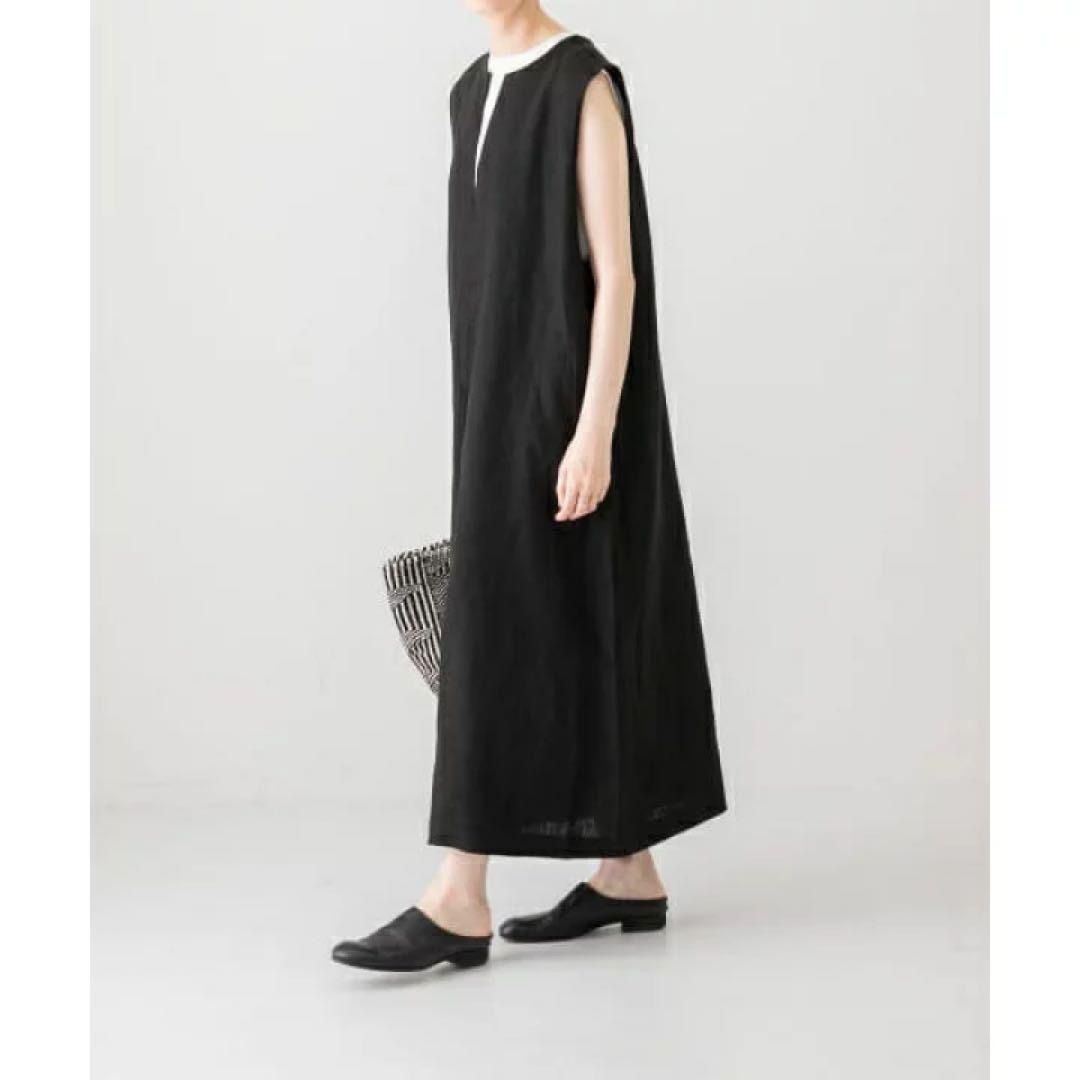 ボックスシルエットとキーネックのデザインが甘くなりすぎずスタイリッシュな印象に。程よい厚みのリネン100%の生地が心地よく、体の線を拾わないサイズ感が大人好みなジャンパースカートです。カットソーやシャツとレイヤードするだけで様になりオンオフ問わず重宝。インにノースリーブのトップスを合わせればワンピース感覚で着用いただけます。両脇にポケット付き。