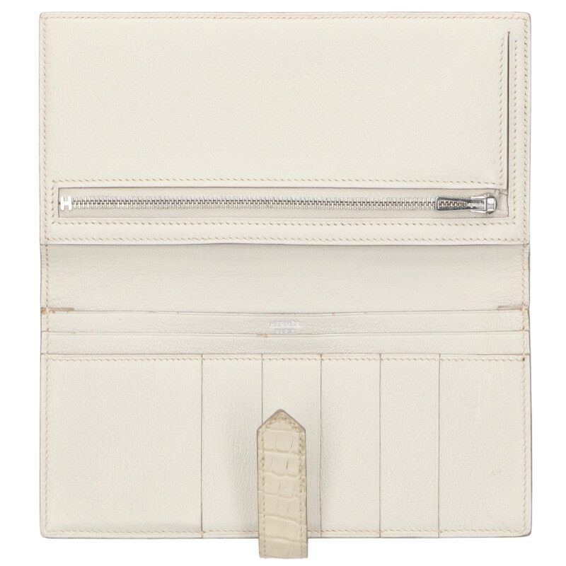 エルメス ベアンスフレ O刻印 SV金具アリゲーターマット財布 メンズ