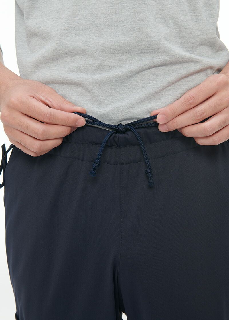 サイドのデザインポケットやメッシュ使いでスポーティなテイストに仕上げています。裾を折り返して股下寸法を調節できる機能やスナップ付きループを搭載、高機能ニット素材を使用していますので便利で快適なはき心地になっています。