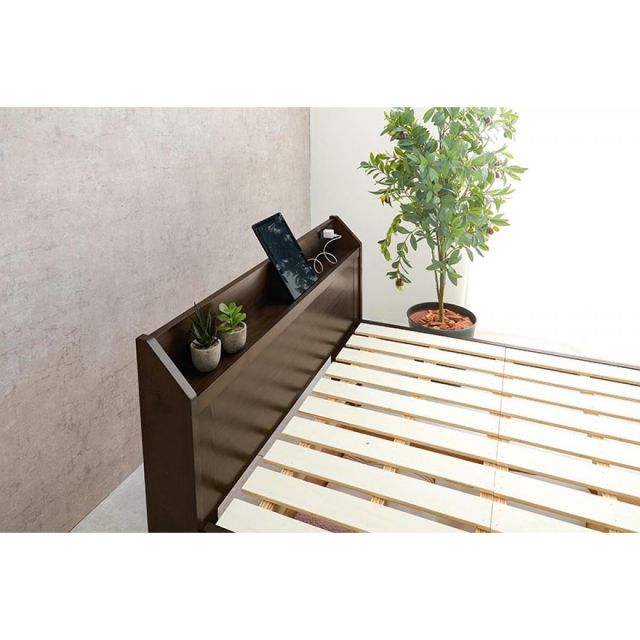 大容量の引出し付きで収納の少ないお部屋にピッタリ。宮棚にスマホを立てて置ける、頑丈な木製すのこベッドです。