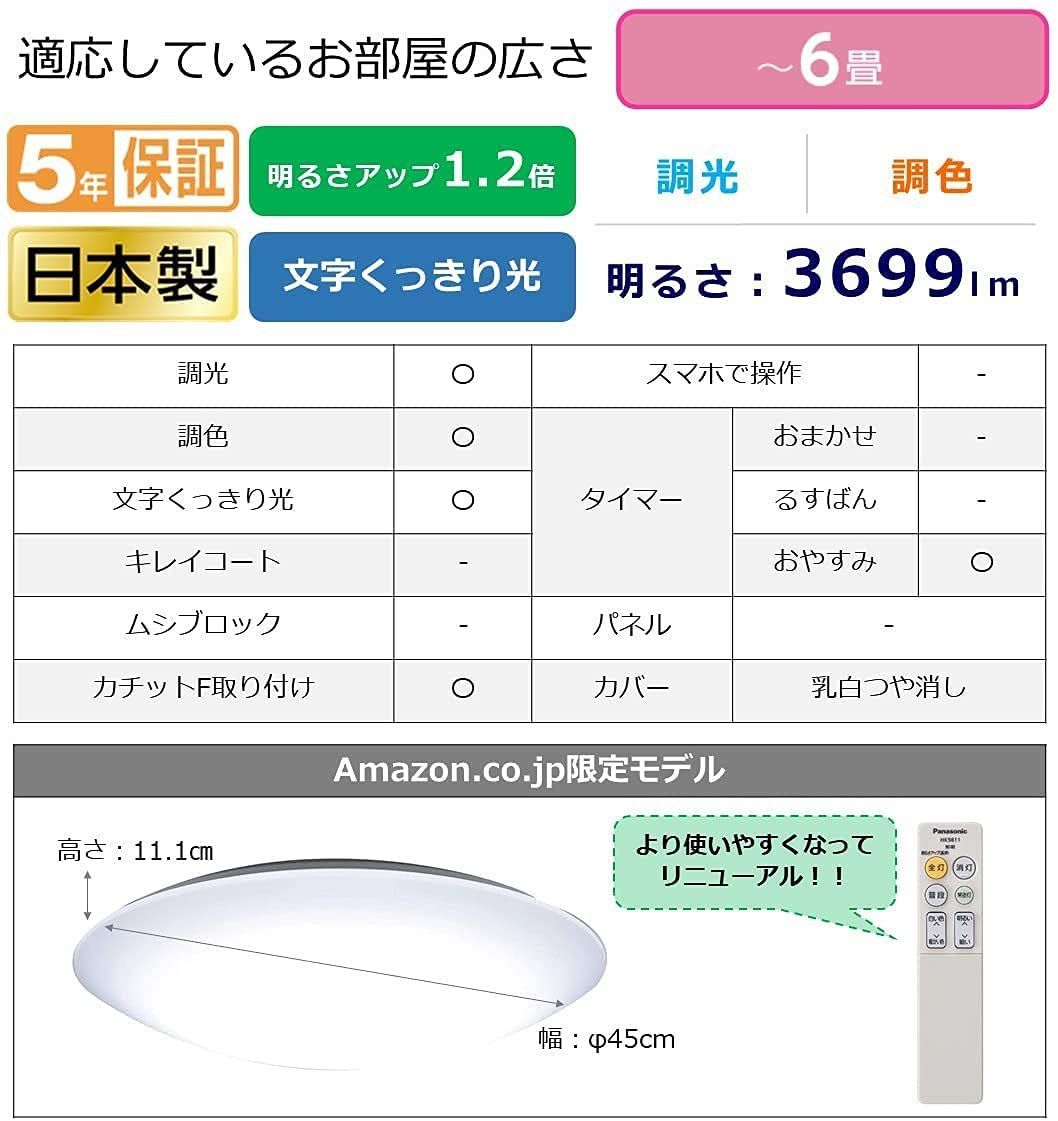 パナソニック 日本製 LEDシーリングライト 調光・調色タイプ ~6畳 3699lm リモコン付 HH-CF0620AZ