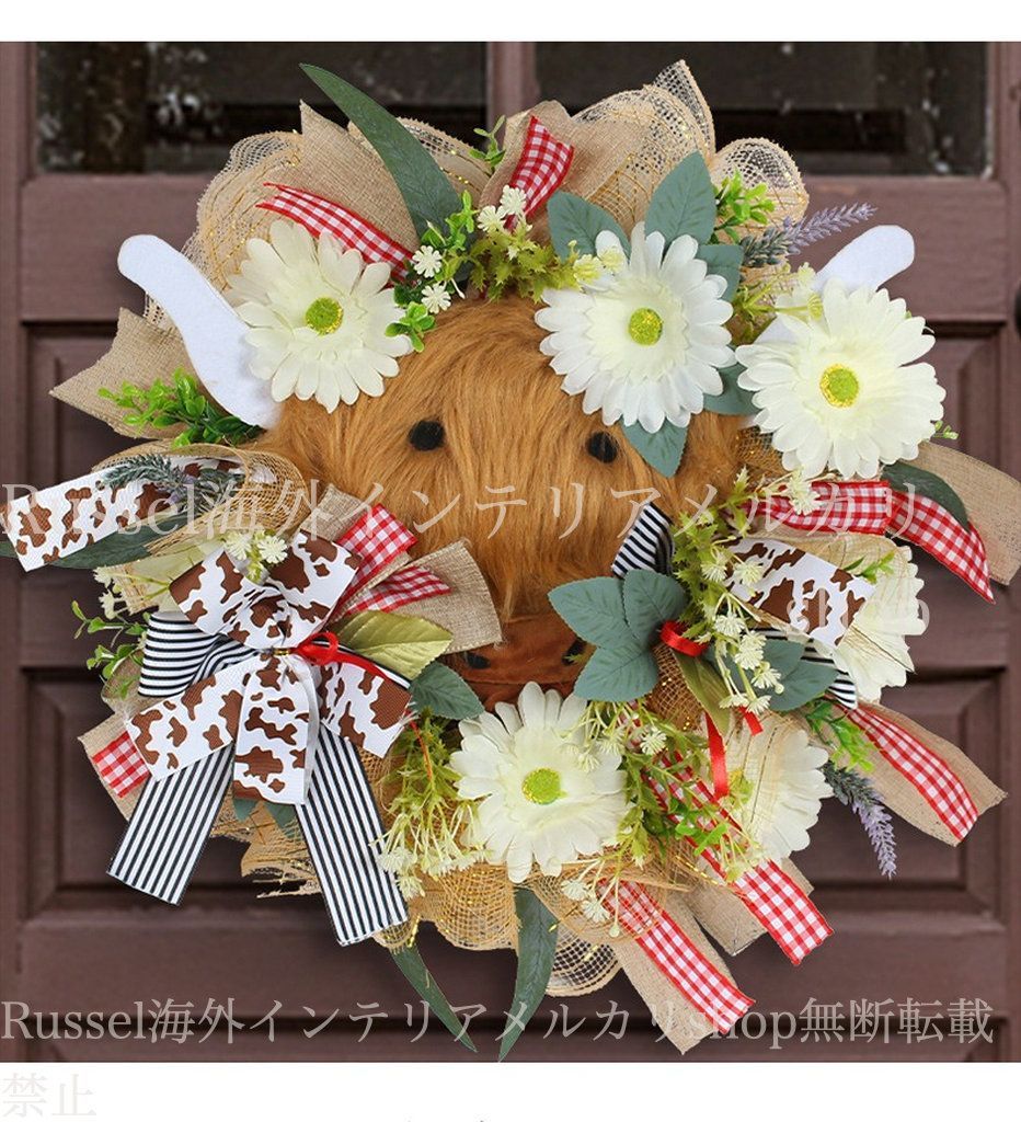 リース ガーデンオーナメント 牛 フェイク グリーン ガーデン ドア お洒落 かわいい 花 フラワー 庭 エレガント 壁掛け ガーデニング 雑貨 ガーデン雑貨 ガーデンインテリア インテリア 庭の装飾 おしゃれ 8-14