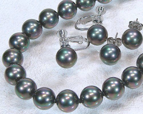 黒蝶貝パール:約10.0mmアップ(ネック・イヤリング共)ブラックシリコン入り