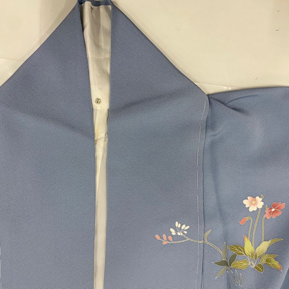 訪問着 身丈167 cm 裄丈67 M 袷 落款 草花 ぼかし 水色 正絹 秀品