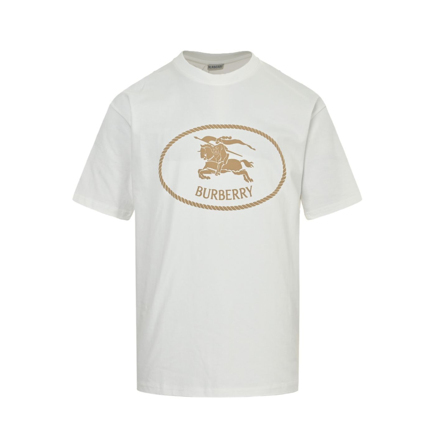 この Burberry 25ss の T シャツは、円形フレーム内のウォーホースプリントがブランドのアイデンティティを際立たせます。生地には 240g の 26 番特滑双股精棉を使用し、平織りの高密度無塵全棉素材で肌触りが滑らかで通気性に優れ、長期着用でも形崩れしにくい仕上がりです。