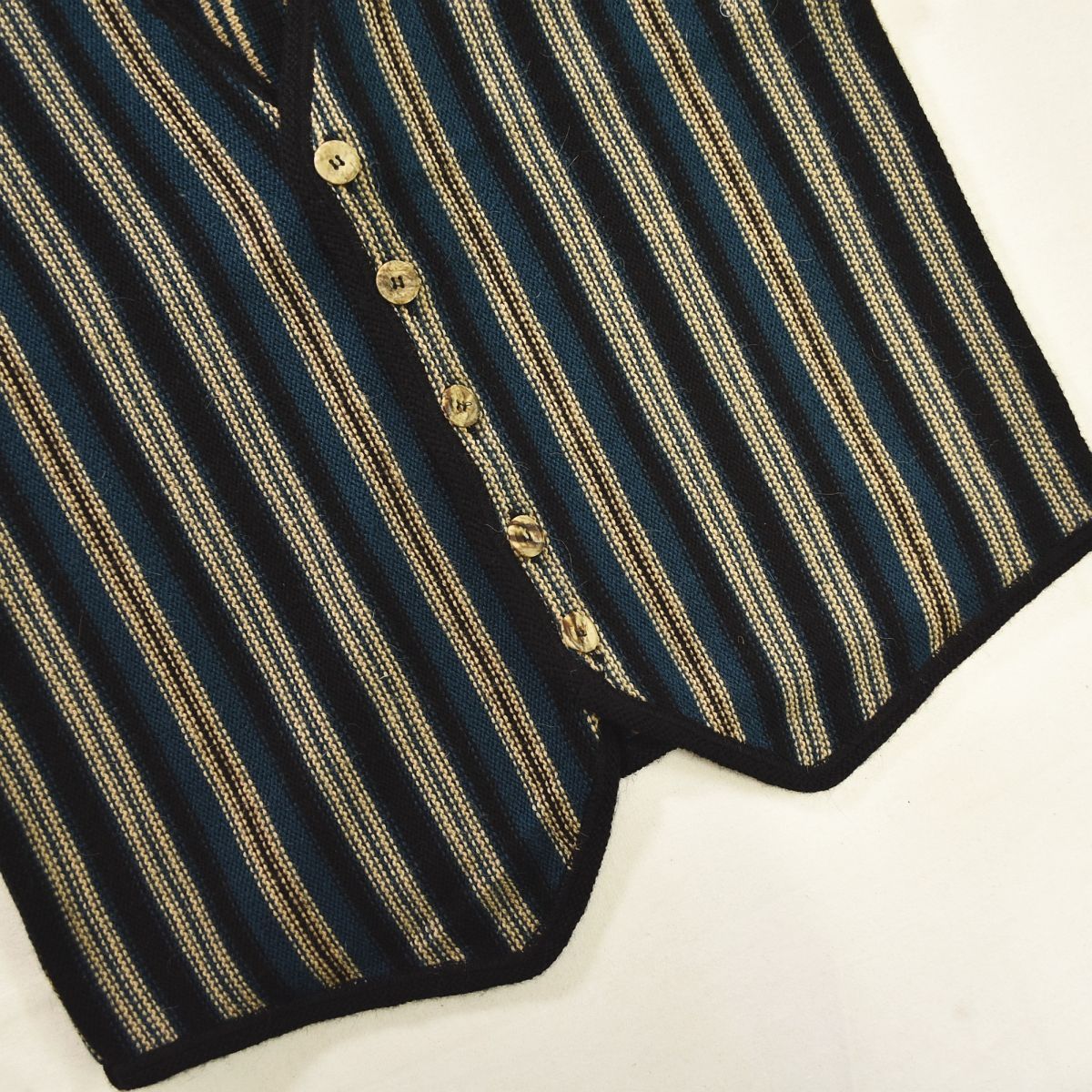 上質 90 s ヴィンテージ ペルー製 alpaca アルパカ 100% ニット セーター ベスト XXL ストライプ柄 グリーン x ベージュ アメリカン カジュアル レトロ レイヤード メンズ