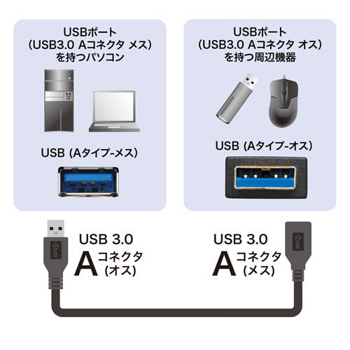 ■コネクタ形状:USB3.0 Aコネクタオス-USB3.0 Aコネクタメス