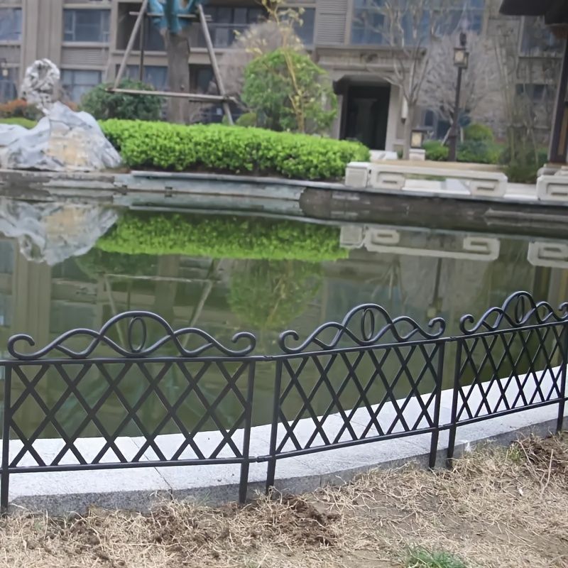 フェンス ガーデンフェンス 北欧 おしゃれ セット 耐久性あり プラスチック製ガーデンフェンス 分離 屋外芝生エッジバリア 簡単に設置 ヤード パティオ 植物ベッド 装飾 エレガント パターン 黒の装飾デザイン ガーデンフェンシング 庭 ブラック
