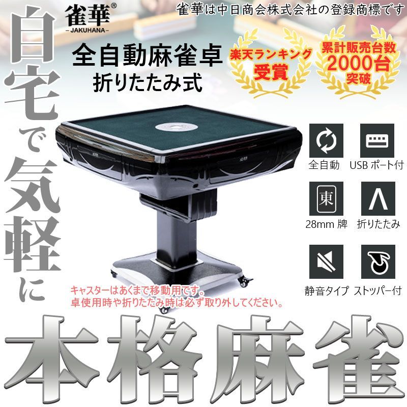 雀華 全自動麻雀卓 折畳式 麻雀卓 折りたたみ式 マージャン卓 雀荘牌28ミリ牌×2面 赤牌点棒 静音 ブラック ZD-XM 28 麻雀テーブル 家庭用 家族 ファミリー 娯楽 練習 マージャンテーブル 洗浄ボール 雀荘牌 自動卓