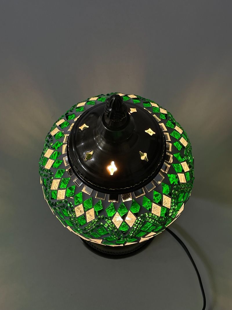 エキゾチックな輝きが美しいモザイクガラスランプです。