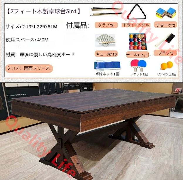 アメリカンブラックエイトマルチ機能 木製ビリヤードテーブル 卓球三合一家庭用エンターテイメント別荘用 size 7 feet 3 in 1