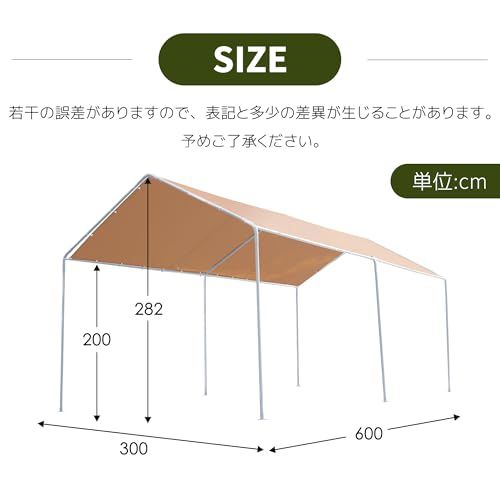 ガレージテント 車庫テント カーポート 3 6 m パイプ車庫 軽自動車対応 大型 車 駐車 倉庫 収納 物置 仮設倉庫 スチール製 防水 簡易 ベージュ ma