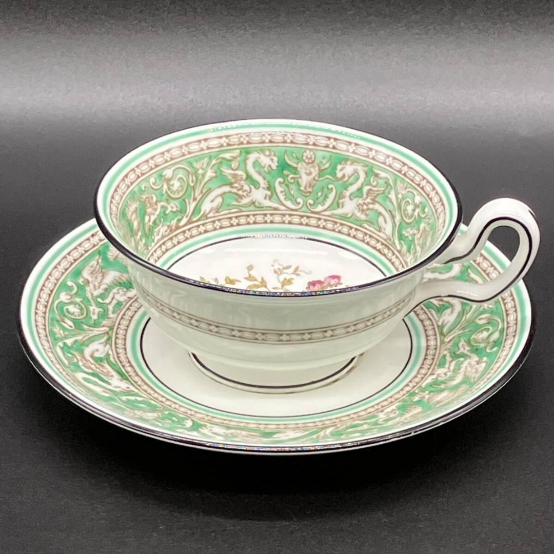 ウェッジウッド フロレンティーン グリーン カップ & ソーサー 花柄 Wedgwood ピオニー フロレンティーン 英国 廃盤 希少