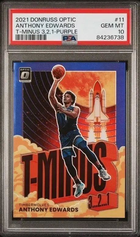 2021 ドンラス オプティック アンソニー・エドワーズ T-Minus パープル PSA10 カードです。PSA 正規品 販売済み、状態は GEM MT 10 です。珍しい パープル カラーなので、コレクション価値があります。コメント 無ければ、すぐ 安全決済してください!