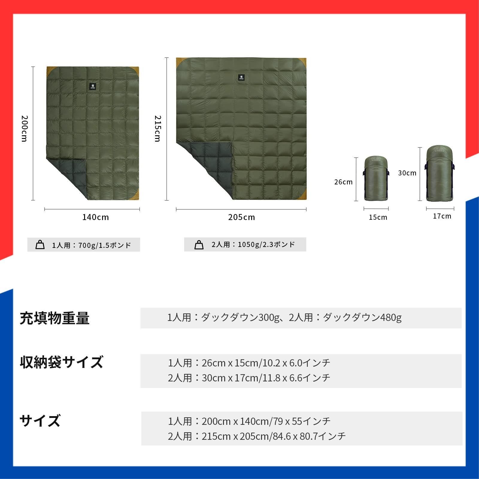 OneTigris ダウンブランケット 2人用 215 マルチブランケット 防寒 キャンプ アウトドア ひざ掛け 掛け布団 車中泊 超軽量 テント用キルト 柔らかい 暖かい コンパクト アップグレード版 膝掛け 掛け毛布 (アーミーグリーン)