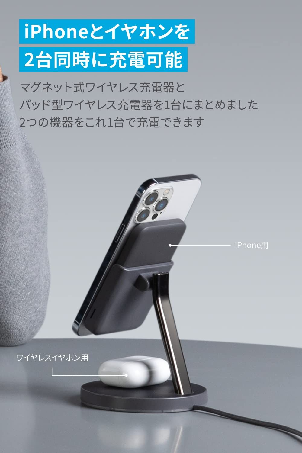 Anker 633 Magnetic Wireless Charger (MagGo)(マグネット式 2-in-1 ワイヤレス充電ステーション)【モバイルバッテリー機能搭載 / 5000mAh / USB急速充電器付属/マグネット式/ワイヤレス出力 (7.5W