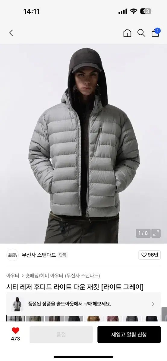 ライトグレーカラーのMusinsa標準フードダウン。素材にはほのかな光沢があるので、高級感があります。軽くて暖かいので、冬に使うには最高だと思います。