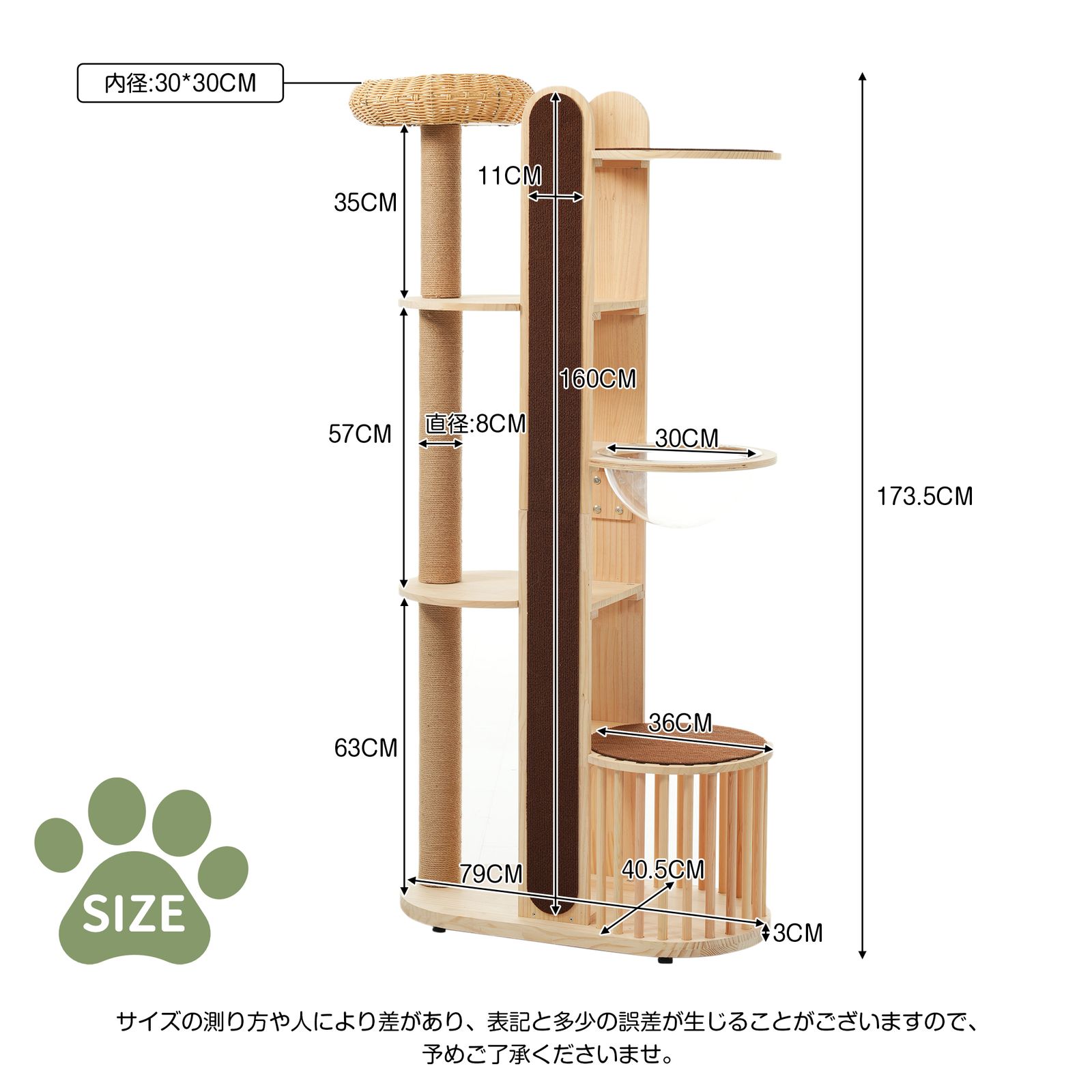 キャットタワー 猫タワー キャットツリー スリム 高さ173.5 cm 据え置き ネコタワー 上り下りしやすい 爪とぎポール 木製 子猫 大型猫 ペット用品 おしゃれ