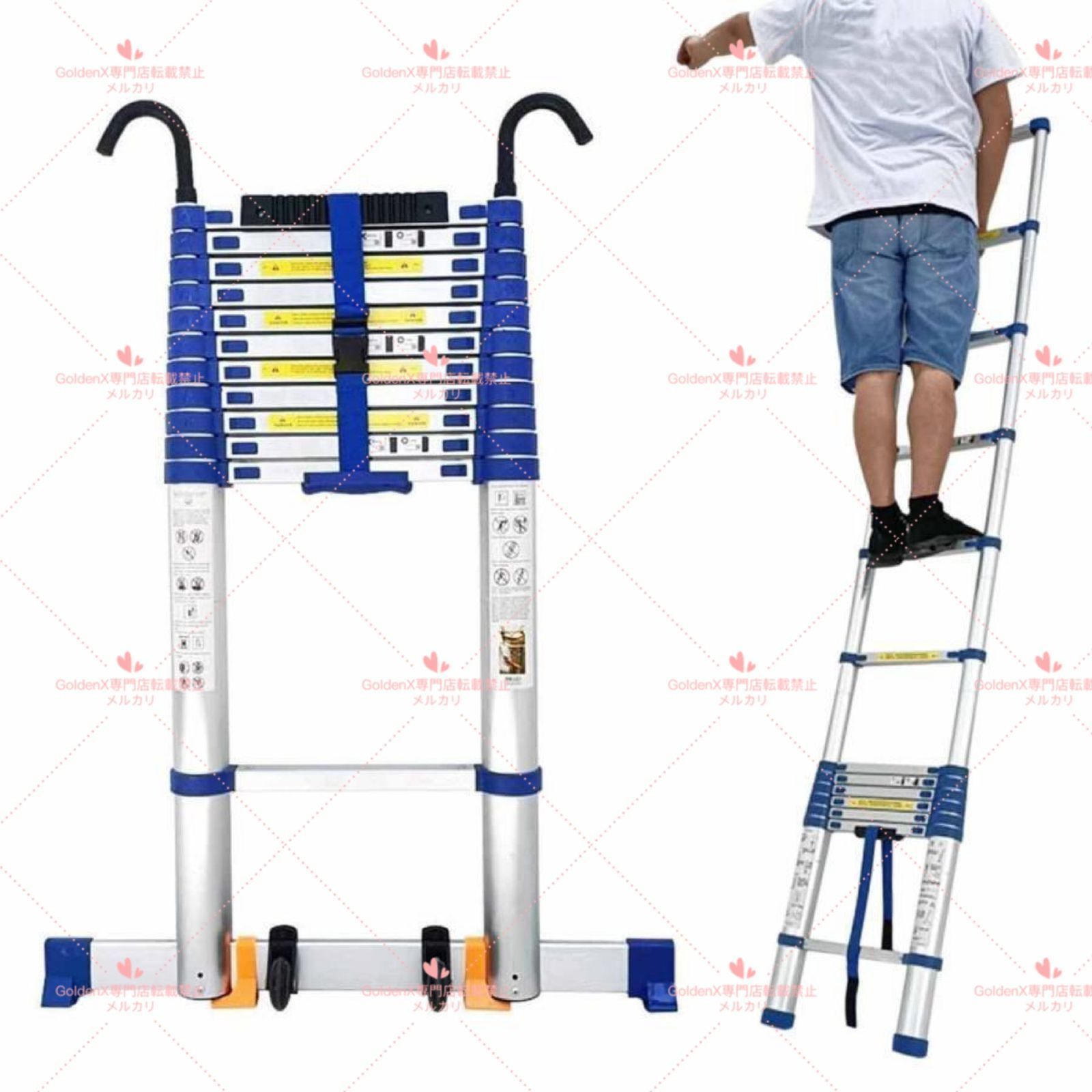 脚立 伸縮 コンパクト 5 m 6.2 7 8 最長 伸縮はしご 取り外し なスイベルフック付き 屋根裏部屋へのアクセス SUVルー