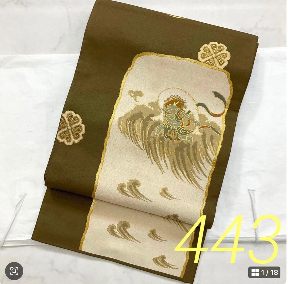 kimono one kimonoarisa 厳選 風神雷神 洒落袋帯 金彩 長尺 443 cm 着物帯小紋普段着訪問着附下留袖色無地名古屋帯袋帯洒落袋帯半幅帯