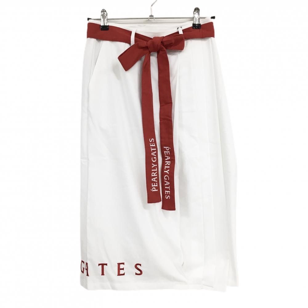パーリーゲイツ スカート 白×レッド 裾ロゴ刺しゅう 共布ベルト付 レディース 0 S ゴルフウェア PEARLY GATES