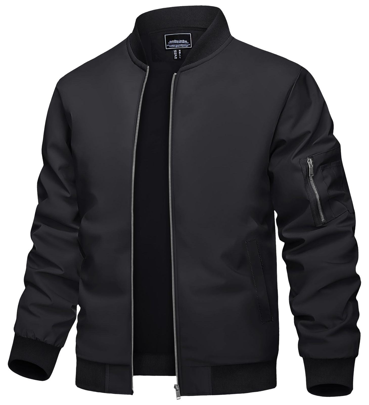 Size:XL_Color:ブラック [TACVASEN] フライトジャケット メンズ アウター 冬 コート 防寒 防風ジャケット スポーツ 軽量 スタジャン 襟付きジャンパー 春物 ミリタリー ブラック XL