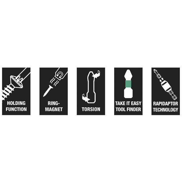 【付属品】リングマグネット付ユニバーサルホルダー:1/4inch×57mm(052490)、プラスビット:PH2×2本・3×1本(056510・056525)、ポジビット:PZ1×3本・2×6本・3×2本(056910・056915・056925)、保持機能付トルクスビット:TX10×2本・15×2本・20×4本・25×4本・30×2本・40×1本、(066140・066141・066142・066143・066144・066145)