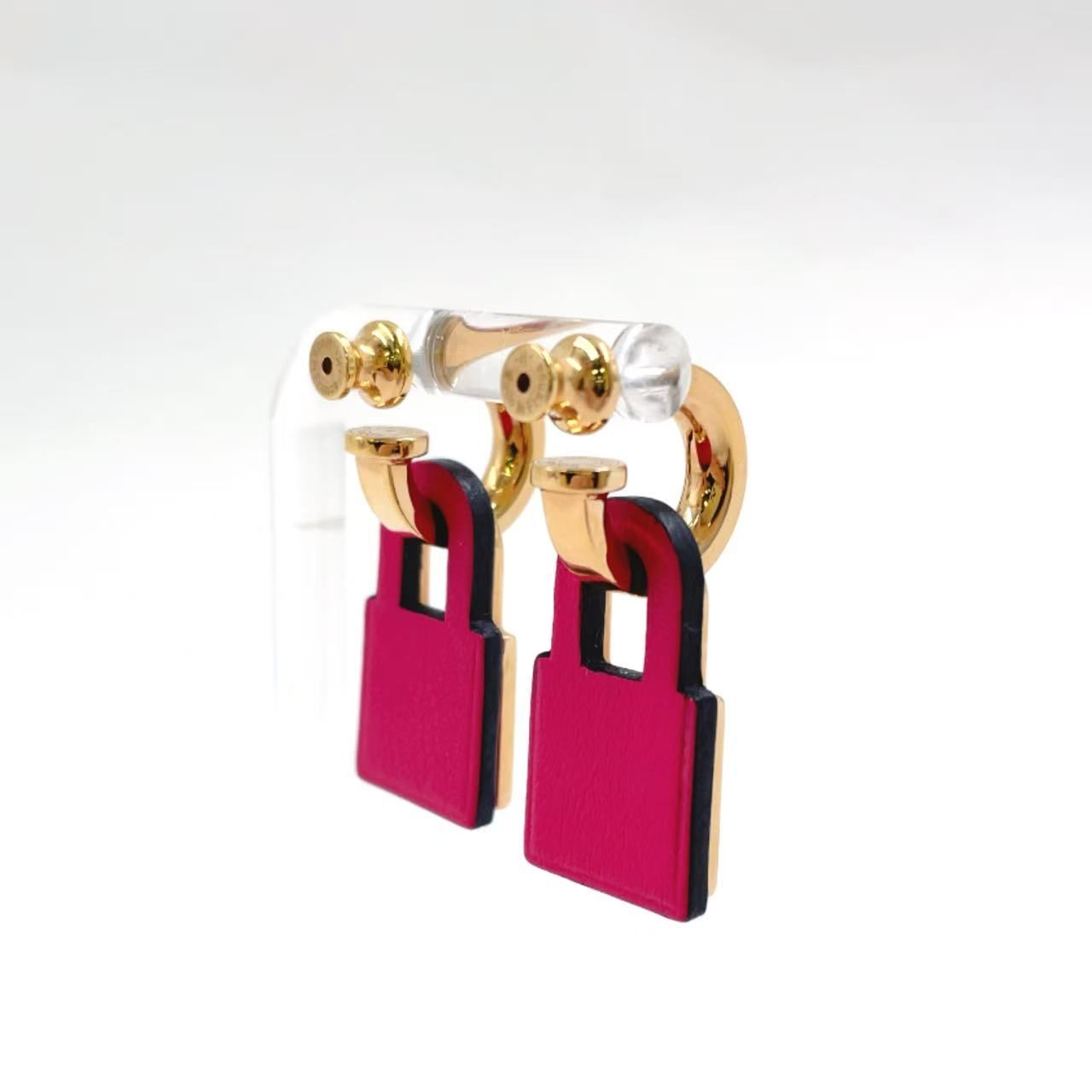 HERMES オーケリーPM Y刻印 レザー×メタル ゴールド×ピンク イヤリング ピアス