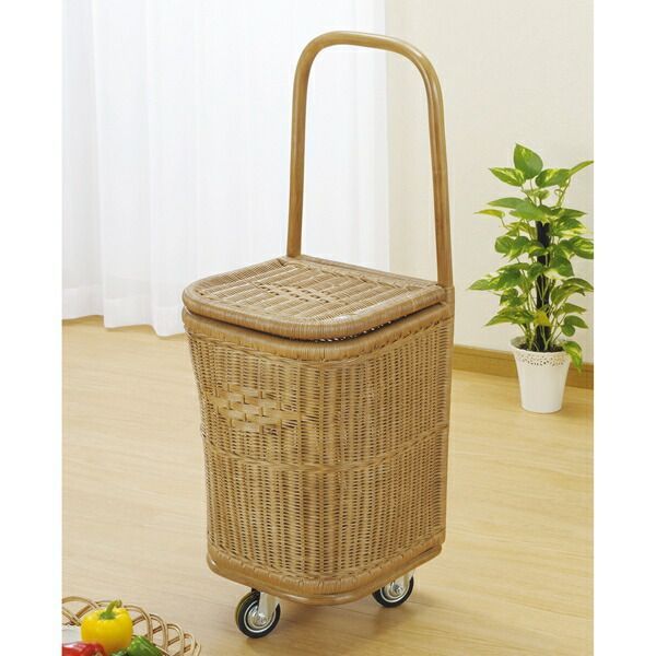 籐素材で人目を惹く清潔感のある籐製 ショッピングカートです。