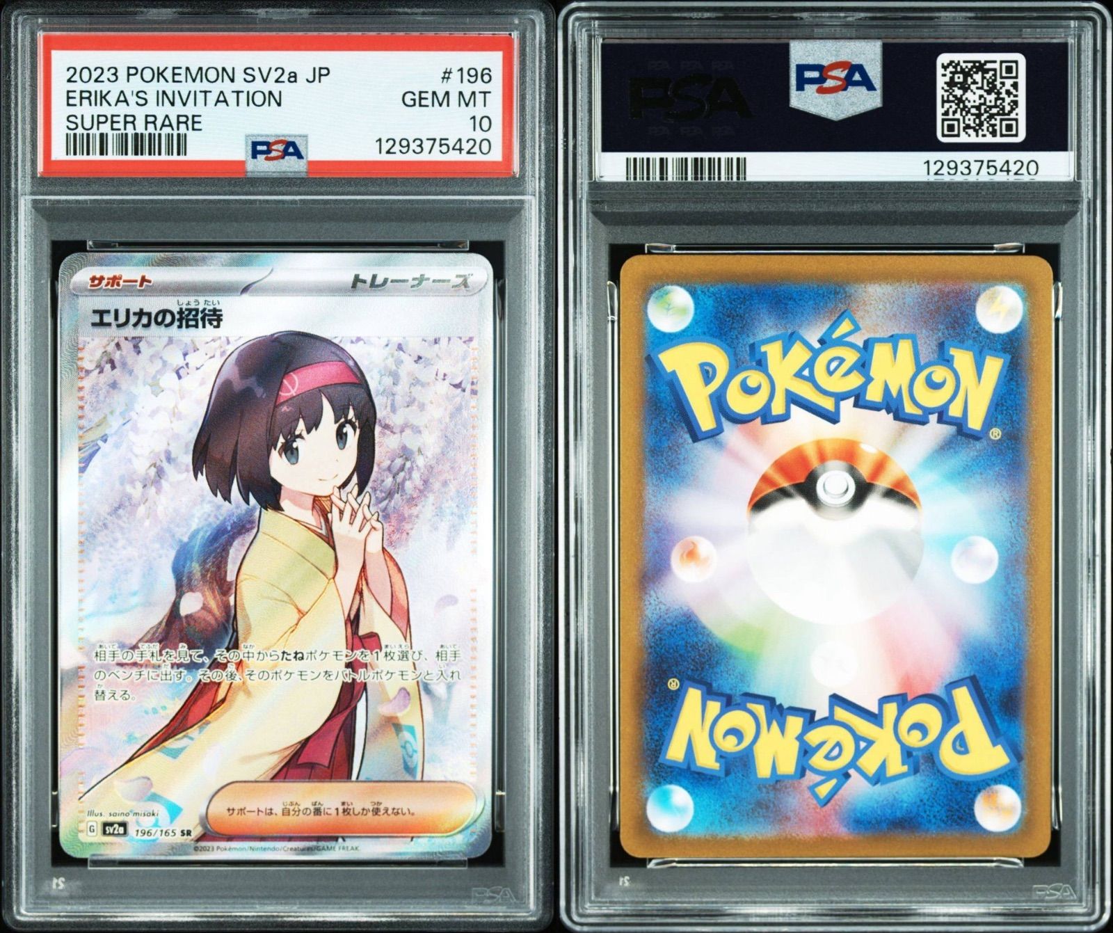 PSA 10 ポケモンカードゲーム エリカの招待 SR SV 2 a ポケモンカード151 196|165