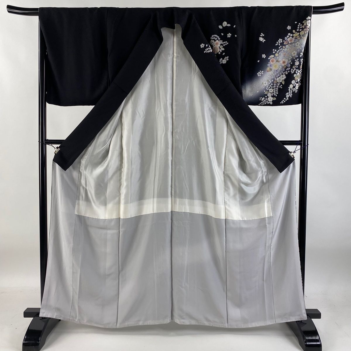八掛裾部分に汚れ、裏地所々にシワがございます。