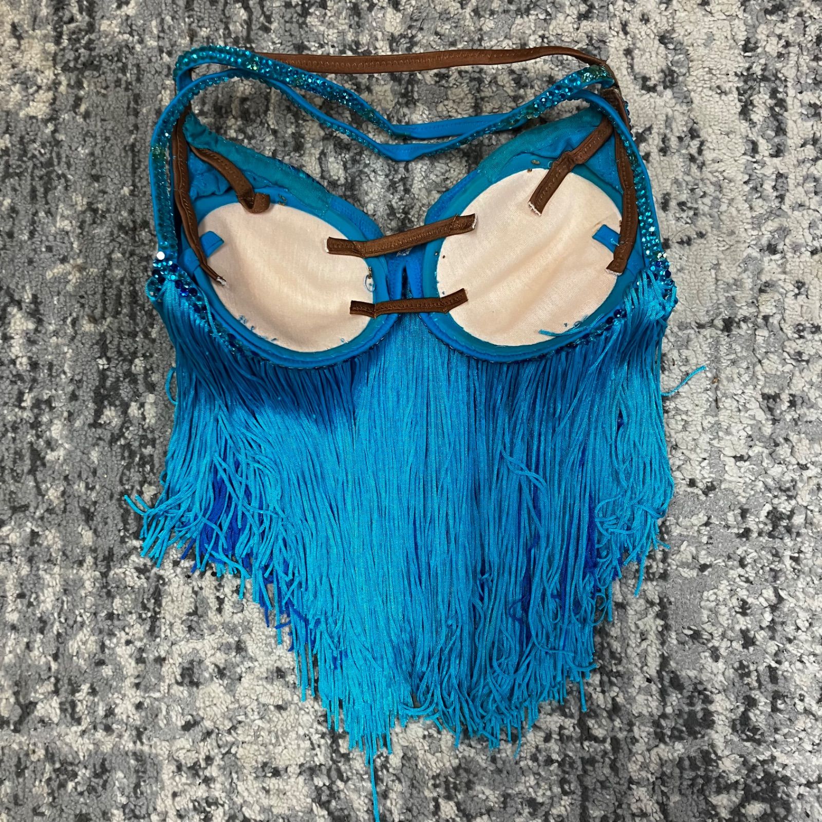 げ交渉 社交ダンスドレス ラインストーン ブルー フリンジ