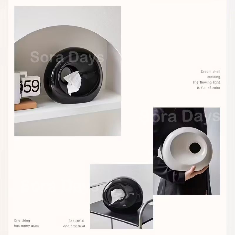 ラウンドフォルムが魅力のティッシュボックスは、オブジェのような存在感を放ちます。