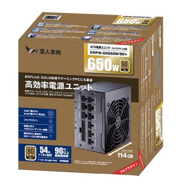 ■電源容量:KRPW-GK650W/90+:650W(定格) / 700W(ピーク)
