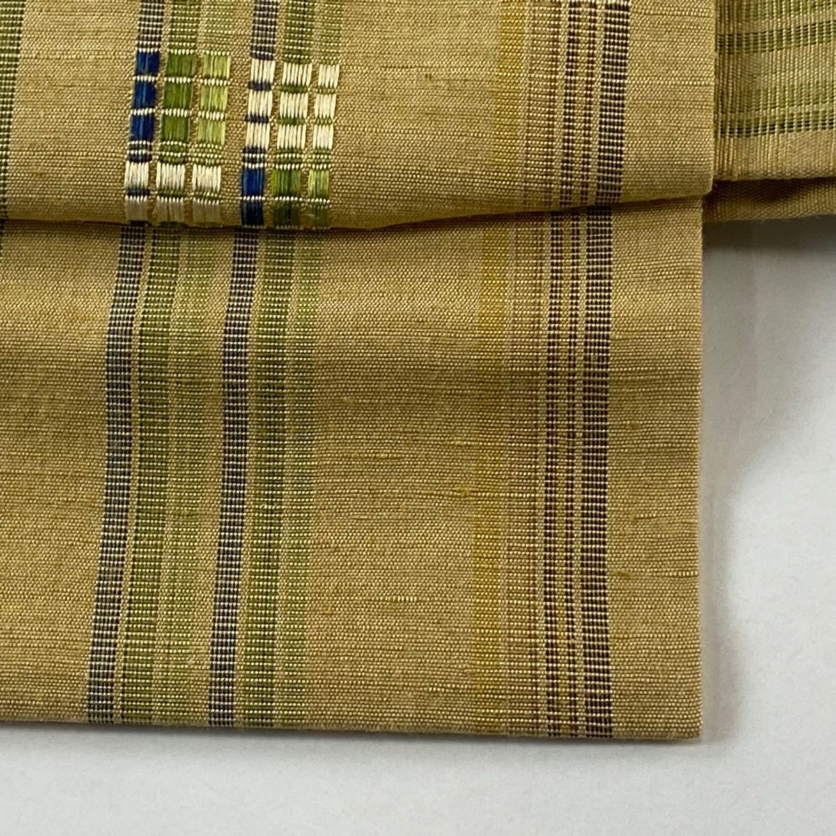 付け帯 落款 作り帯 紬地 ロートン織 新垣みどり 縞模様 薄茶色 正絹