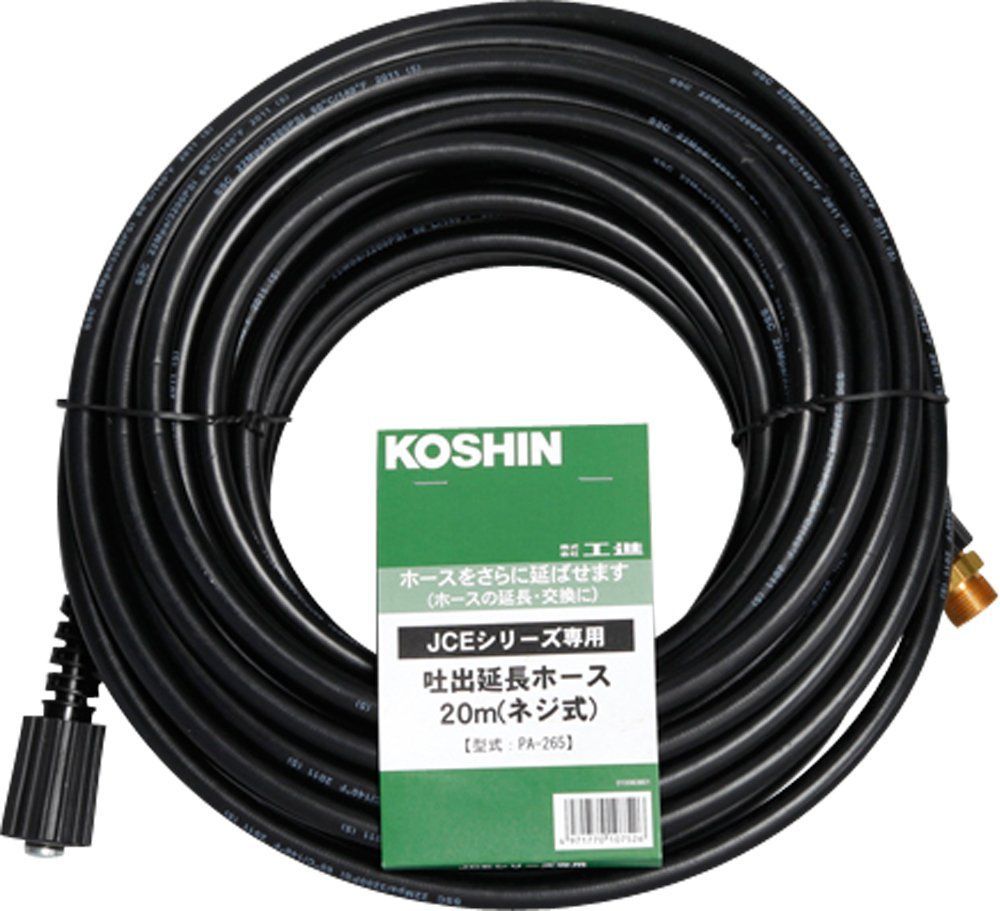 Size 20 m 工進 KOSHIN JCE 1107 1408用延長ホース20 PA 265 ネジ式 ゴムホース ブラック