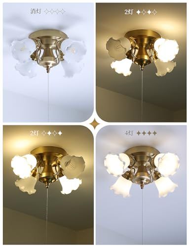【プルスイッチ付属】プルスイッチを引っ張ることで、点灯数を全灯→対角線2灯→残り2灯→消灯の順番で切り替えることができます。壁スイッチのないお部屋にも利用できます。