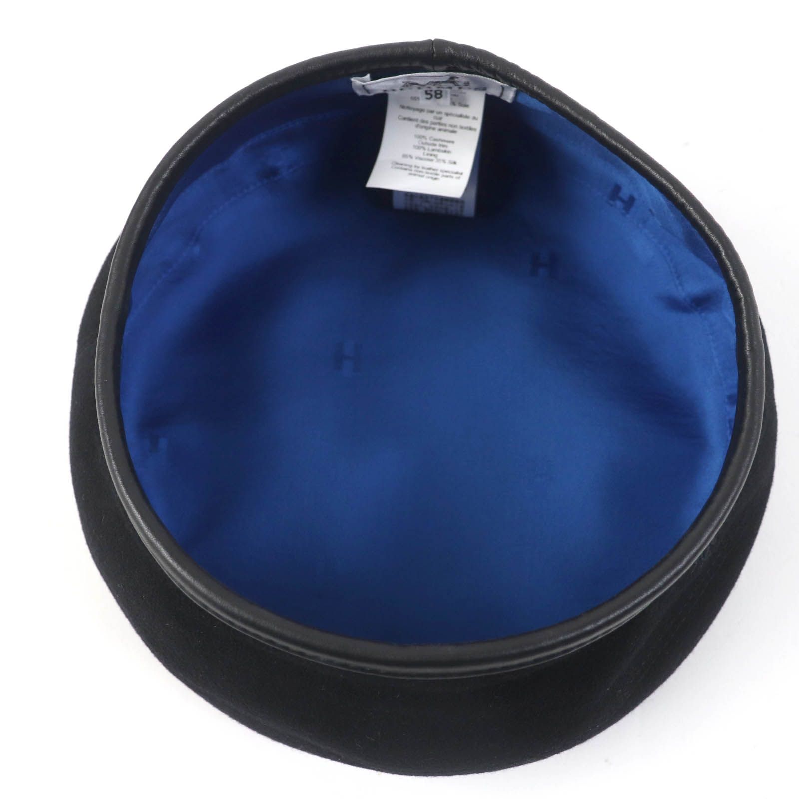 HERMES エルメス カシミヤ100% ラムレザー使い Hリフト刺繍 ベレー帽 ハット 帽子 ブラック 58 イタリア製 レディース