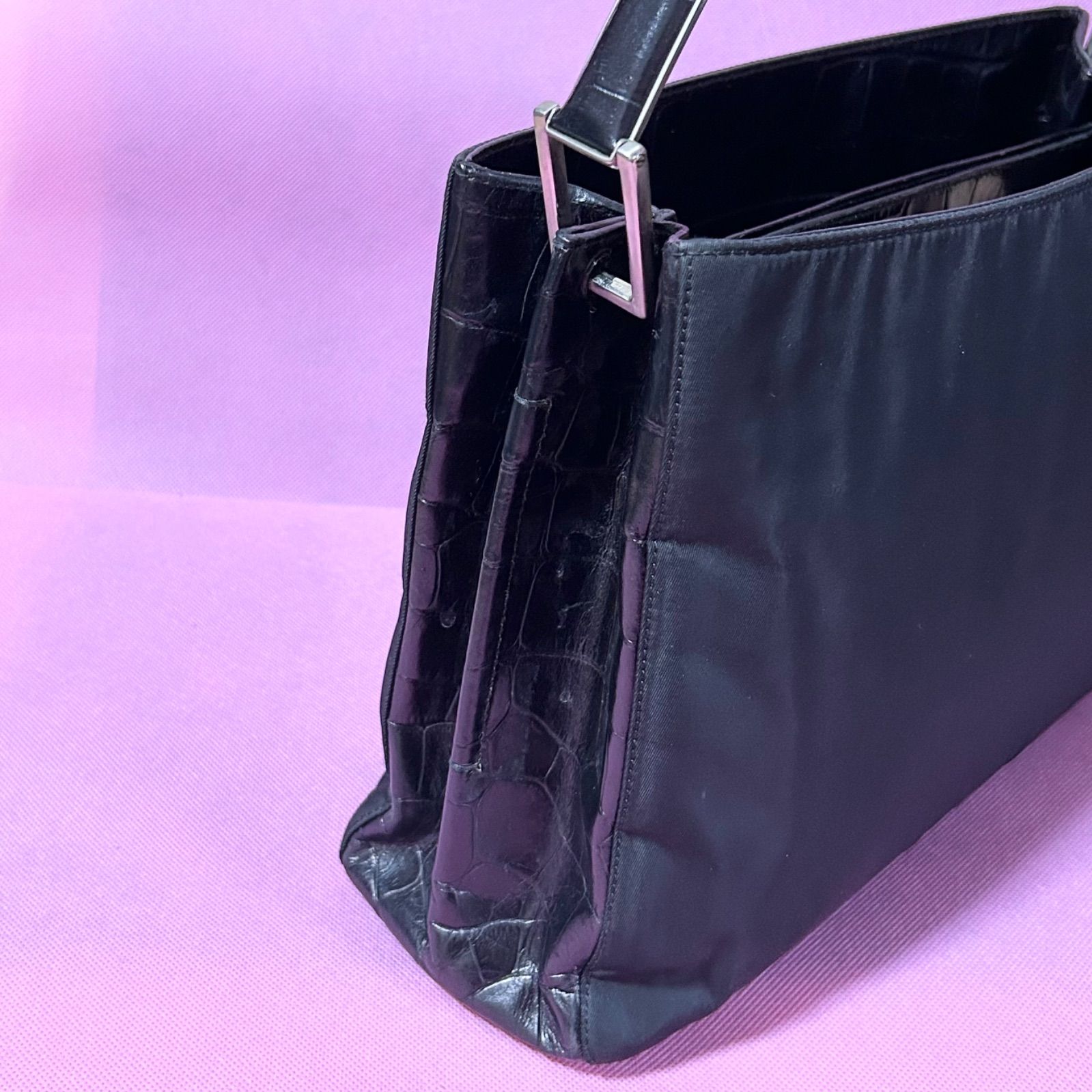 ?良品? PRADA プラダ ナイロン クロコ型押し ワンショルダーバッグ ショルダーバッグ ブラック